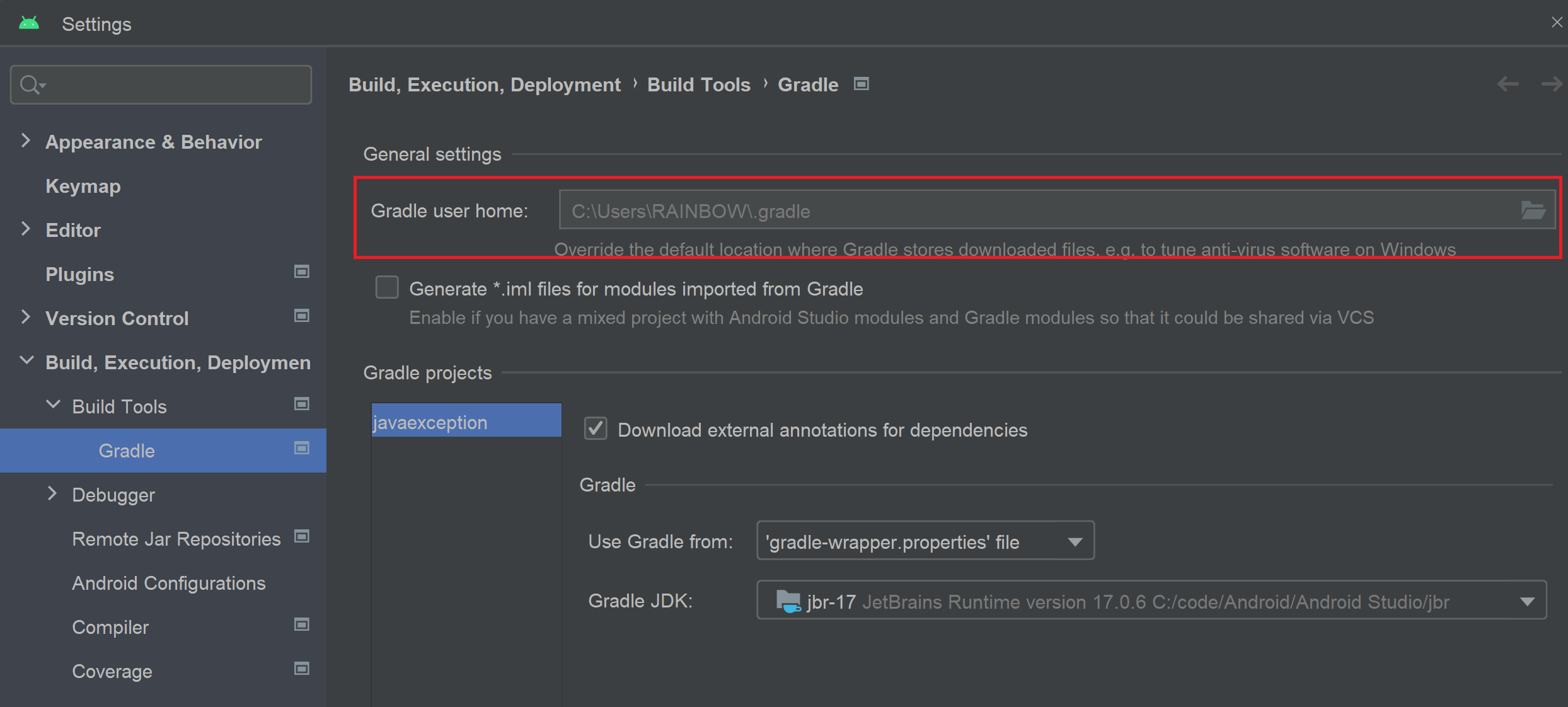 1. gradle user home 메뉴를 이용해 해결하는 방법