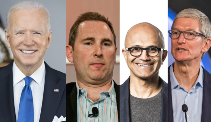 수요일 회의에는 Alphabet CEO Sundar Pichai, Amazon CEO Andy Jassy, Apple CEO TIm Cook, IBM 의장 겸 CEO Arvind Krishna, Microsoft CEO Satya Nadella와 에너지 및 교육과 같은 다른 산업 분야의 대표들이 참석했습니다.