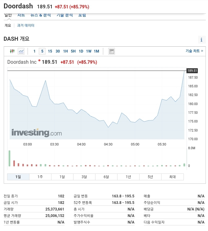 미국의 음식 배달 1위 업체인 door dash가 어제 상장했다.
