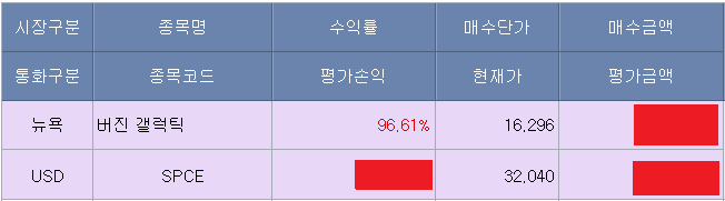 올해 처음으로 우주 관련 주식 중 하나인 버진 갤럭틱을 샀으며, 언젠가는 일반인들도 비행기를 타듯이 우주선을 타는 일이 가능해질 거라 믿고 미리 사두었다.