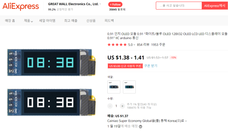 그중 알리에서 아주 작고 귀여운 OLED를 판매하는 것을 보고 구입하여 사용해보았다.