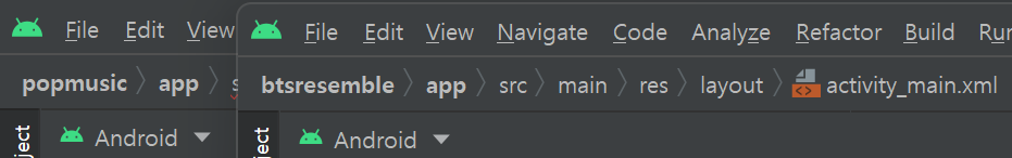 예를 들어 예전 프로젝트의 기능을 현재 프로젝트에 복사하기 위해서는 안드로이드 스튜디오를 2개 열어 작업을 하면 아주 편하다.