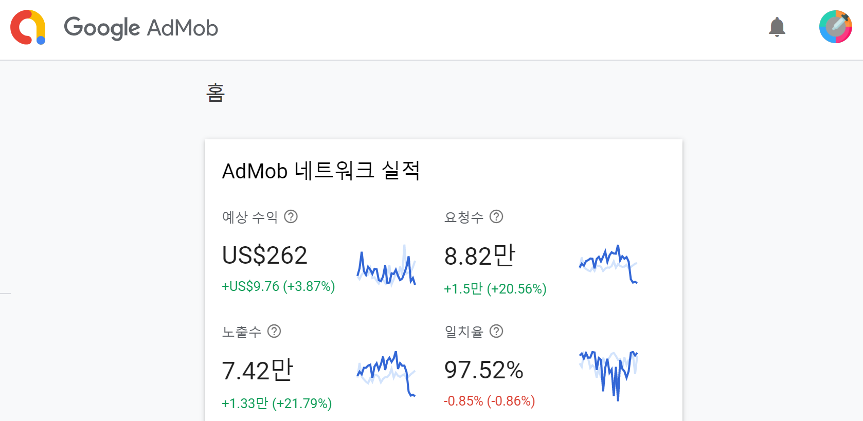 역시나 admob에 비하면 허들도 낮고 아주 편하게 수익을 내기 시작했습니다.