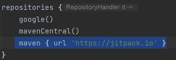 -. 아래 스크린샷의 파란색 라인 추가 maven { url 'https://jitpack.io' }