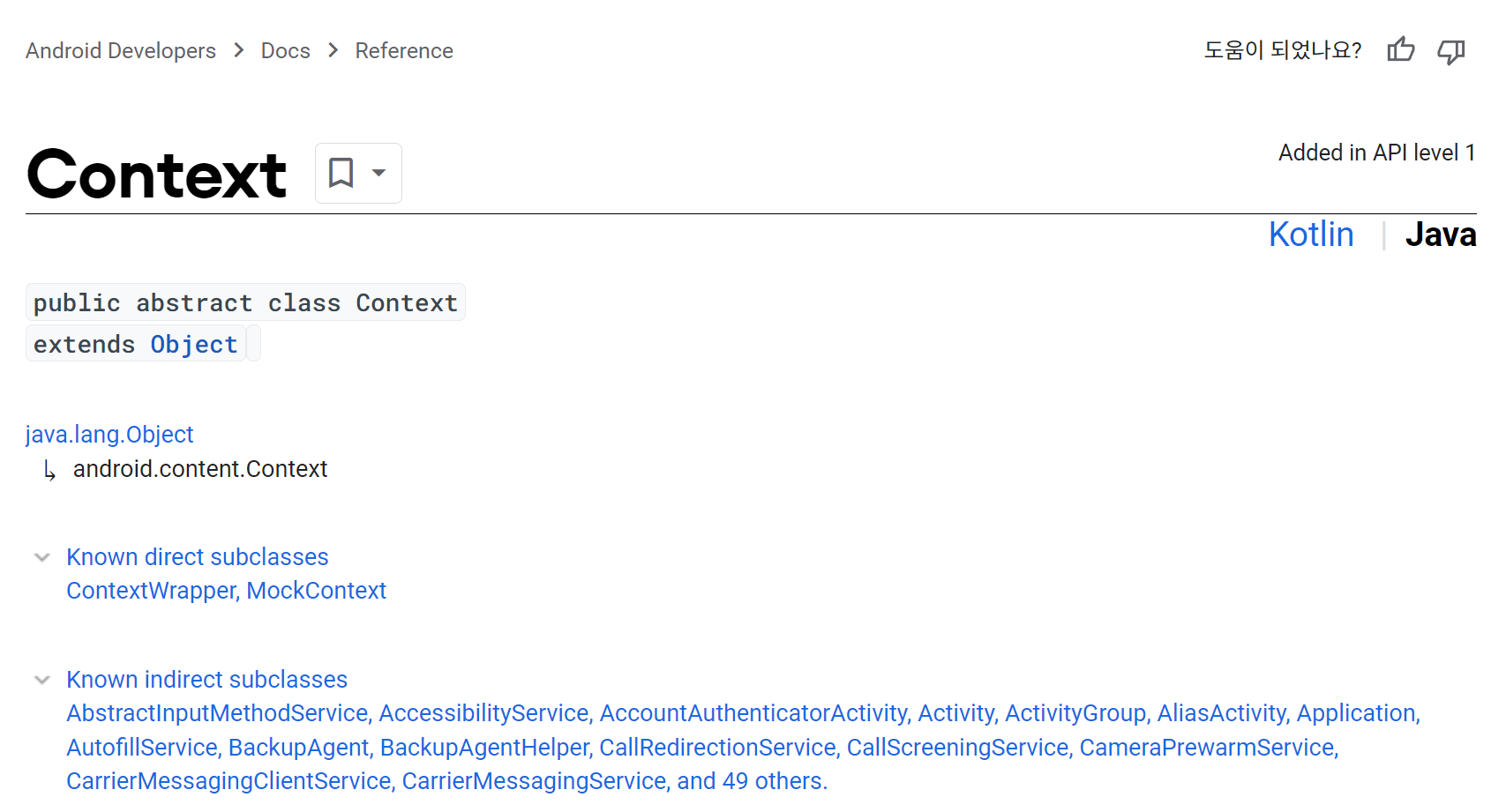 이름에서 알 수 있듯이 응용 프로그램/개체의 현재 상태에 대한 컨텍스트입니다. 새로 생성된 개체가 진행 중인 작업을 이해할 수 있습니다. 일반적으로 프로그램의 다른 부분(활동 및 패키지/응용 프로그램)에 대한 정보를 얻기 위해 호출합니다.