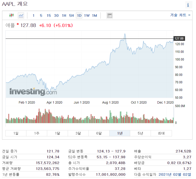 애플 주식이 5프로 이상 급등하는 현상이 발생한 것이다.