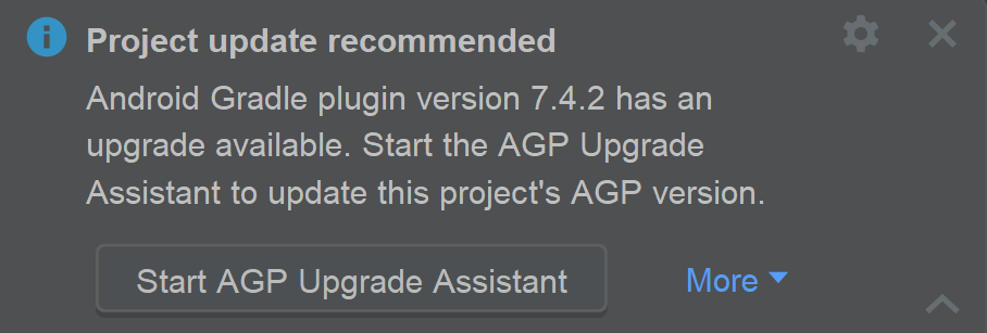 안드로이드 스튜디오에서 개발을 하다보면 아래 화면처럼 AGP upgrade 노티가 뜰때가 있습니다.