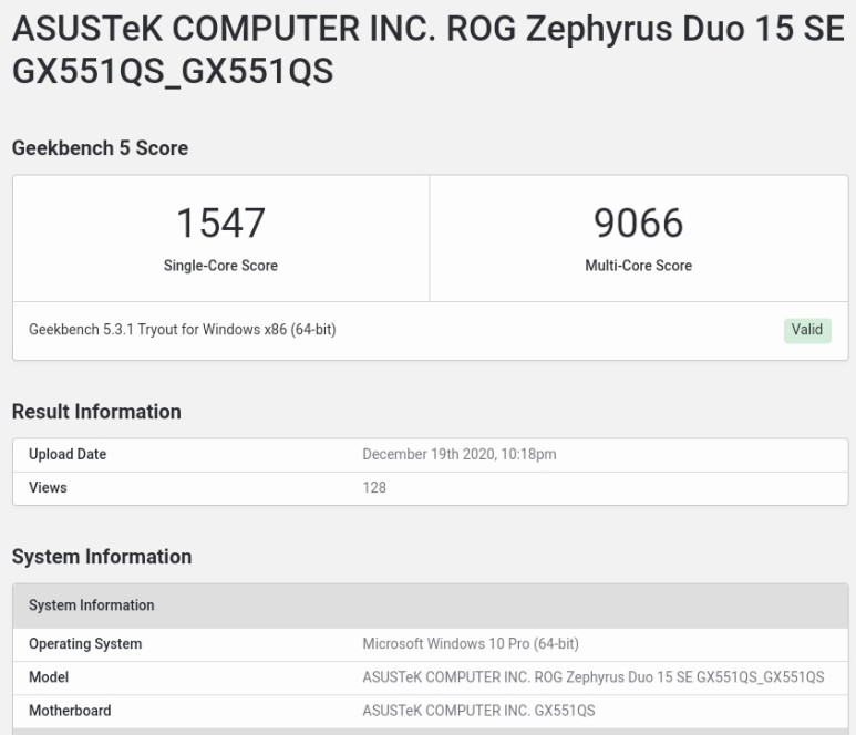 긱벤치에 포착된AMD의 새로운 프로세서인 Ryzen 9 5900HX 벤치 정보는 아래와 같다고 합니다.