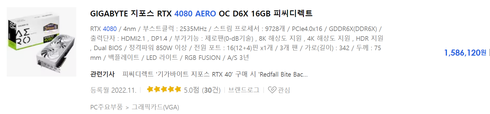 최종 제품은 기가바이트 RTX 4080 AERO 되겠습니다.
