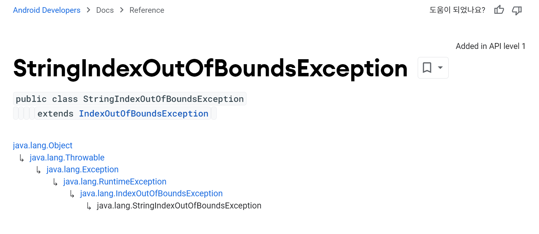 StringIndexOutOfBoundsExceptionAdded in API level 1