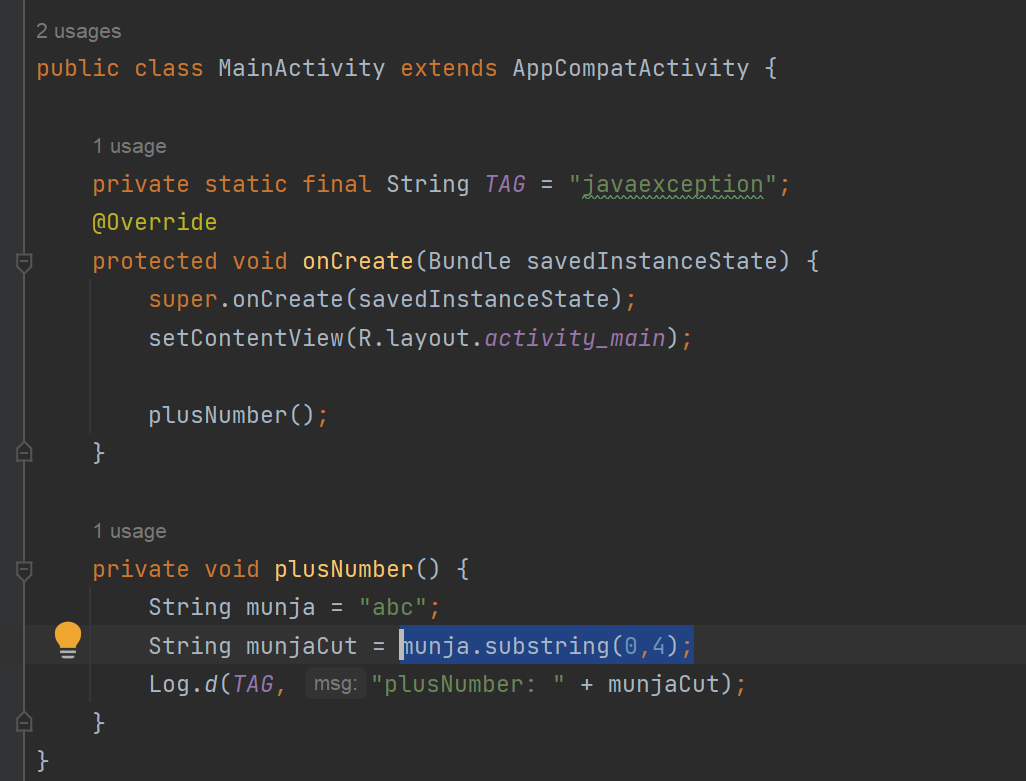 기존 munja String은 3글자이지만, substring으로 4글자를 가져오려고 합니다.