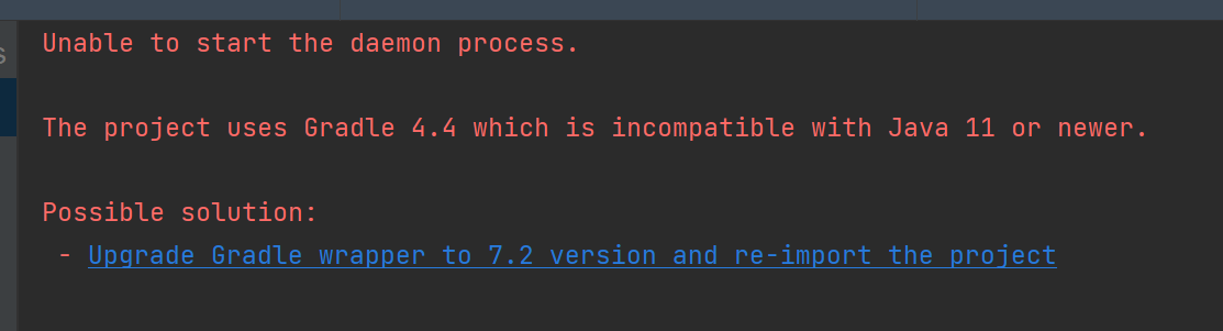 파란색으로 표시된 Upgrade Gradle wrapper 를 선택하면 아래와 같이 업그레이드를 시작하게 됩니다.
