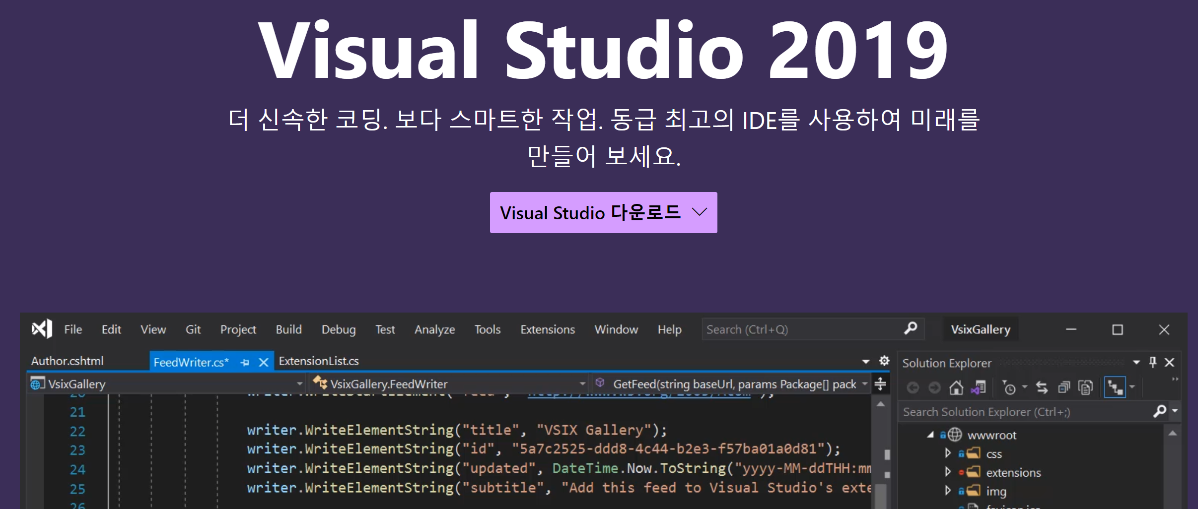 지금까지 프로그래머들은 Microsoft IDE (코드 편집기)를 홈페이지에서 다운로드하여 사용하였습니다.