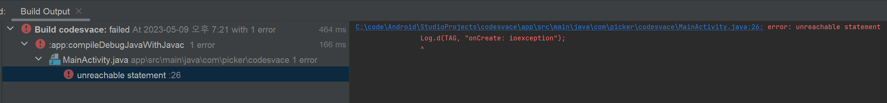 -. 아래처럼 unreachable statement라고 표시가 됩니다.