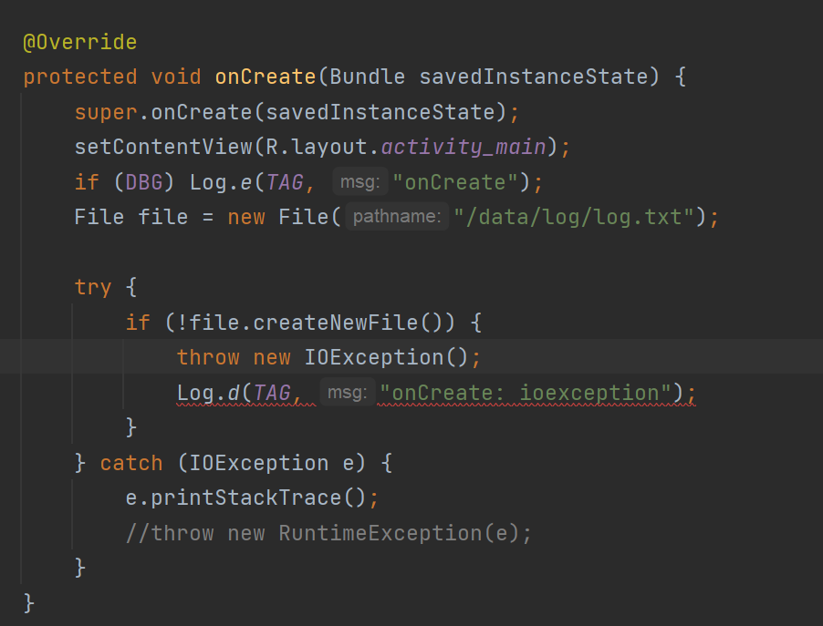 -. 아래 코드에서 보면 log.d ~~~ 로 시작하는 라인에서 빨간색 오류가 보입니다.