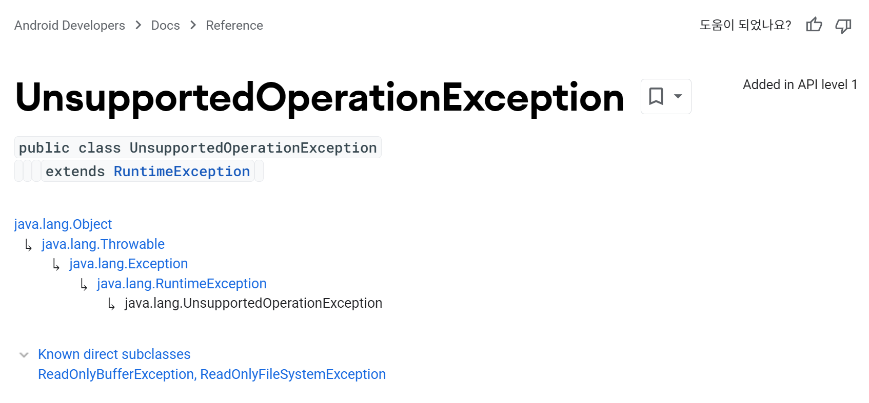 개발중에 java.lang.UnsupportedOperationException라는 에러를 보게 된다면 아래처럼 해결해보세요.